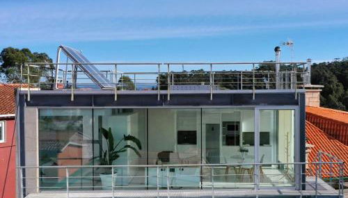 Apartamento Cubo de Cristal con piscina y vistas al mar, que tiene vistas a la piscina, dispone de alojamiento con zona de barbacoa y balcón a unos 11 min a pie de Praia Lavaxeira.