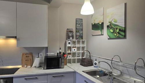 Este apartamento con aire acondicionado tiene acceso directo a una terraza y cuenta con 2 dormitorios independientes y cocina totalmente equipada.