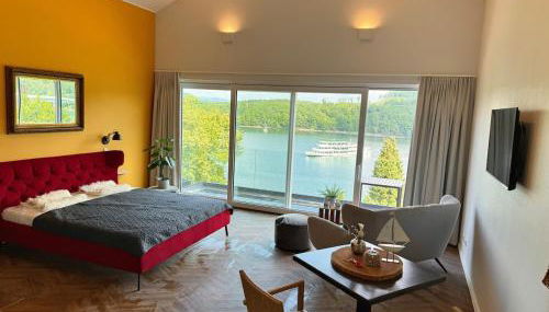 #5 Ommi Kese STAR Suite Kamin Balkon Seeblick, que tiene jardín y terraza, ofrece alojamiento en Olpe con wifi gratis y vistas al lago.