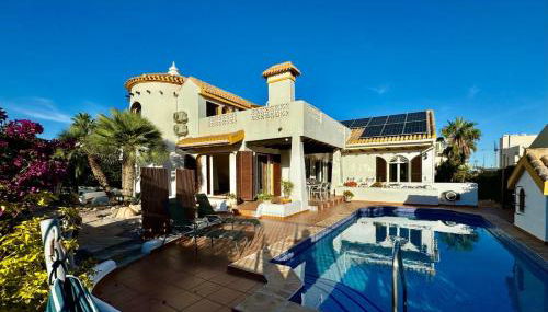 Ibiza style villa first line to golf!, que cuenta con piscina al aire libre, jardín y terraza, ofrece alojamiento en Villamartin con wifi gratis y vistas a la piscina. Este alojamiento ofrece piscina privada y parking privado gratis.