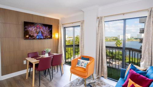 Lakeview 2 suites 6 min to New EPIC Universe se encuentra en Orlando y ofrece un balcón con vistas a la piscina y al río, además de piscina al aire libre abierta todo el año, piscina cubierta y centro de fitness. Este apartamento ofrece parking privado gratis, recepción 24 horas y wifi gratis.