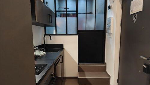 El apartamento tiene 1 dormitorio, una zona de cocina con nevera y horno, y 1 baño con ducha y secador de pelo.
