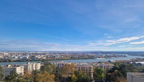 T4/5 avec vue sur les Alpes à 5 minutes de Lyon, que cuenta con terraza, ofrece alojamiento en La Mulatière con wifi gratis y vistas a la montaña. El alojamiento ofrece vistas al jardín y está a 19 min a pie de Museo de las Confluencias y a 4,8 km de Estación de tren de Lyon Perrache.