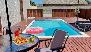 Acomodação Cambirela está en Palhoça y dispone de alojamiento con piscina privada, terraza y vistas a la ciudad.