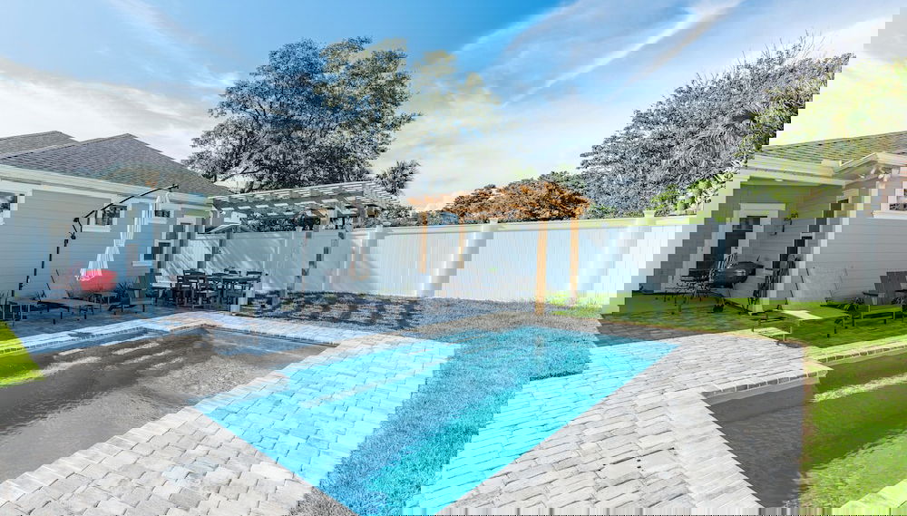 Pet Friendly + Private Pool; Amazing Fenced Backyard, 5 Min Walk to Beach!