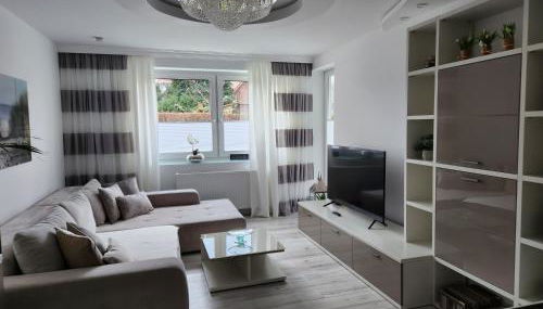 Moderne Wohnug mit Terrasse se encuentra en Pinneberg, a 13 km de Volksparkstadion, a 16 km de Feria de Hamburgo y a 16 km de Estación de tren de Hamburgo - Altona. Dispone de jardín, terraza, vistas al jardín y wifi gratis en todo el alojamiento.