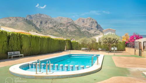 Velo Villa w/ A/C, free Wi-Fi & Pool near Benidorm es un alojamiento con piscina al aire libre y terraza que se encuentra en Polop de la Marina, a 8,3 km de Terra Natura, a 9 km de Parque Acuático Aqua Natura y a 12 km de Aqualandia.