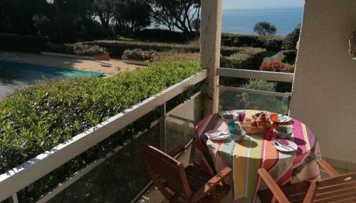 Appartement Pornic vue mer, que cuenta con vistas a la piscina, ofrece alojamiento con piscina de temporada al aire libre, zona de playa privada y terraza a unos 15 min a pie de Plage de la Noëveillard.