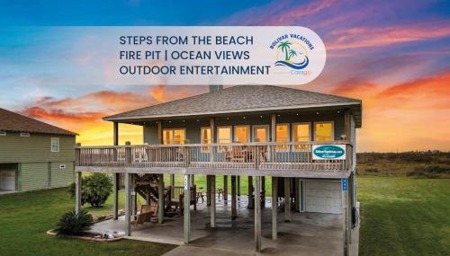 Sand Dollar Beachside 3BR Retreat, Ocean Views, Firepit & Pet Friendly está en Port Bolivar, en la región de Texas, y dispone de balcón y vistas al mar. Se encuentra a pocos pasos de Bolivar Beach y ofrece recepción 24 horas.