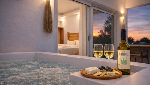 DelMar Suites Syros está en Finikas, en la región de Cícladas, cerca de Playa de Finikas. Ofrece alojamiento con wifi gratis, parking privado gratis y acceso a la bañera de hidromasaje. El alojamiento tiene bañera de hidromasaje.