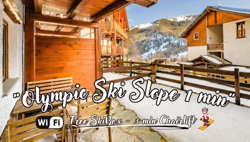 Pista Olimpica 1min - Ski Box - Seggiovia 3min está en Plan, a 5,2 km de Sestriere Colle y a 32 km de Estadio Sauze d'Oulx Jouvenceaux, en una zona donde se puede practicar esquí. El alojamiento está a 3 km de Estadio del Trampolino y tiene wifi gratis en todo el alojamiento.