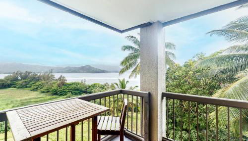 Hanalei Bay Resort 9206 está a 2 min a pie de Puu Poa Beach y ofrece alojamiento en Princeville con acceso a una bañera de hidromasaje. Este alojamiento con vistas al mar dispone de terraza y piscina.