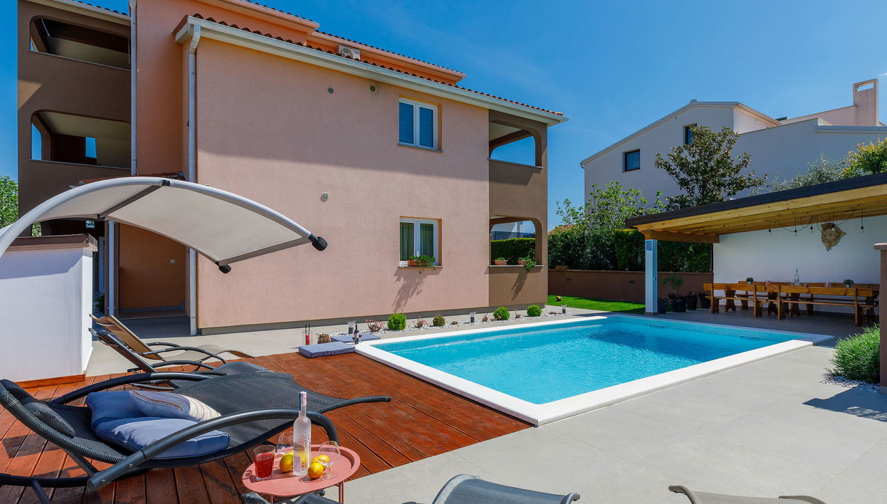 Casa unifamiliar "House Eric&Paolo", amplia de 2 plantas. A 2 km del centro de Pula, a 5.5 km del centro de Fažana, a 2 km del mar, a 4 km de la playa, en una calle. Privado: terreno 600 m2, césped 40 m2, piscina rectangular (7 x 4 m, 140 cm de profundidad, Disponible por temporada: 01.May. - 01.Oct.) con escalera interior. Ducha exterior, muebles de jardín, barbacoa (columpio), mantenimiento de la piscina a través del propietario/jardinero. En el inmueble: acceso a internet, futbolín, trampolín, lavadora. Aparcamiento en el mismo terreno. Tienda 500 m, supermercado 3 km, restaurante 1 km, café 700 m, parada autobús 1 km, playa de gravilla 4 km, zona para bañarse 4 km. A tener en cuenta: adecuado para familias. El propietario no acepta grupos de adolescentes/jóvenes. El propietario vive en el mismo inmueble. El propietario está a disposición de clientes para la limpieza de la piscina y el mantenimiento de la propiedad. La casa consta de 3 apartamentos que se alquilan como una unidad. Dos apartamentos en la planta baja y un apartamento en la primera planta.