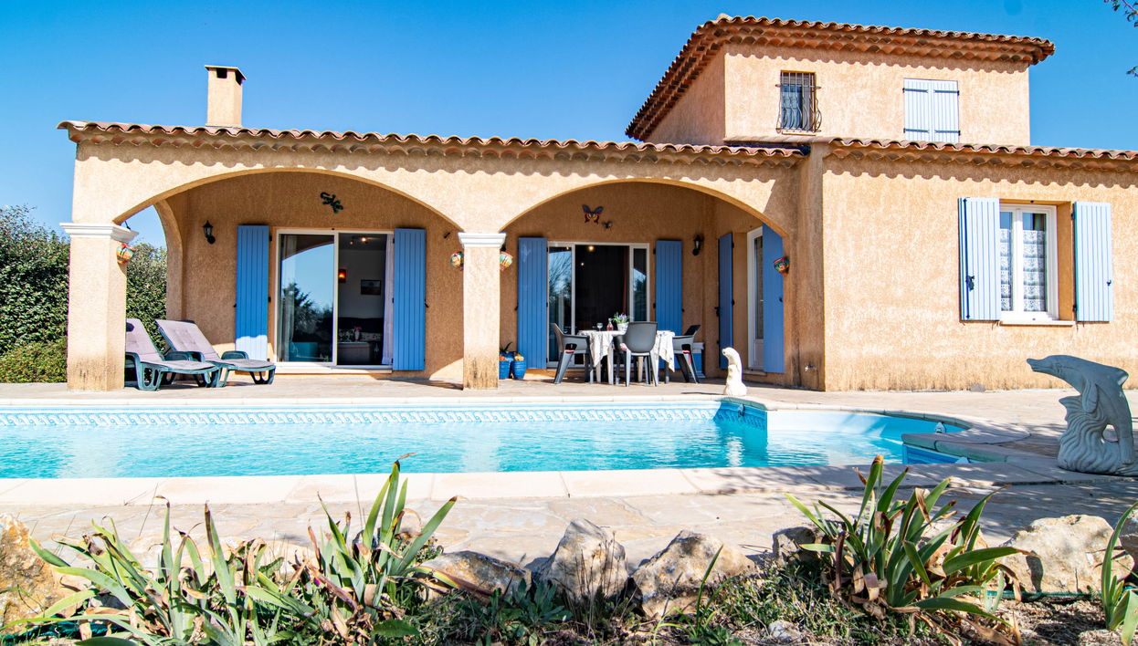 Casa de campo "Mistral", 600 m s.n. m., muy bonita, rústica, rodeada de árboles y prados. A 1 km del centro de Régusse, en la periferia, a 8 km del centro de Aups, a 37 km del centro de Draguignan, lugar soleado en un barrio residencial, a 70 km del mar, a 23 km de un lago, en el campo. Privado: jardín bonito, cuidado 1'100 m2 (vallado) con césped y plantas, piscina (9 x 4 m, 140 cm de profundidad, Disponible por temporada: 01.Ene. - 31.Dic.) con escalera interior y sistema de cobertura. Ducha exterior, terraza (80 m2). Trastero a disposición. Acceso por escaleras (3 escalones) hasta la casa. Aparcamiento (para 2 coches) en el mismo terreno. Supermercado 2.5 km, restaurante 900 m, parada autobús 8 km, estación de tren "Manosque" 52 km, playa de arena "Fréjus" 70 km, lago "Lac de Sainte Croix" 23 km. Atracciones en los alrededores: Moustiers Sainte Marie, Grottes de Villecroze. Lagos conocidos fácilmente accesibles: Lac de Sainte Croix. Zona de senderismo Gorges du Verdon. A tener en cuenta: primera planta cerrada y no ocupada.