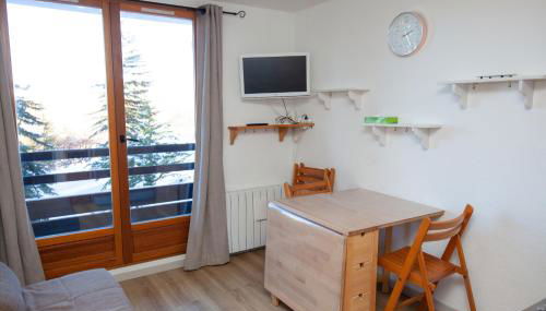 Studio pied des pistes, 1 chambre, 24 m2 au calme está en Risoul, a 29 km de La Forêt Blanche, a 48 km de Puy-Saint-Vincent y a 49 km de Les Orres, y dispone de balcón. Tiene terraza, acceso a pie de pista, vistas a la montaña y wifi gratis en todo el alojamiento.