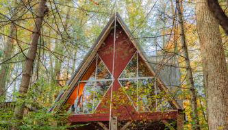 Waterfront A Frame with Dock Canoe Kayaks Family