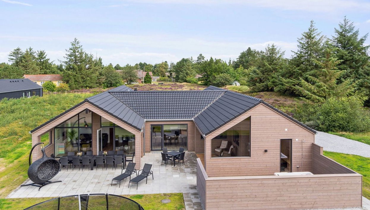 Casa unifamiliar del año 2023. A 3.5 km del mar. Privado: terreno en estado natural 1'575 m2, piscina cubierta (2 x 6 m, 1'6.6 m2, 140 - 140 cm de profundidad). Piscina de hidromasaje, barbacoa. En el inmueble: futbolín, trampolín, lavadora, secadora. Aparcamiento junto a la casa. Tienda de comestibles 1.5 km. Campo de golf 4.9 km. El propietario no acepta grupos de adolescentes/jóvenes.