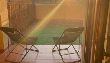 El apartamento tiene terraza, 2 dormitorios, sala de estar y cocina bien equipada con nevera y lavavajillas. Hay toallas y ropa de cama en el apartamento.