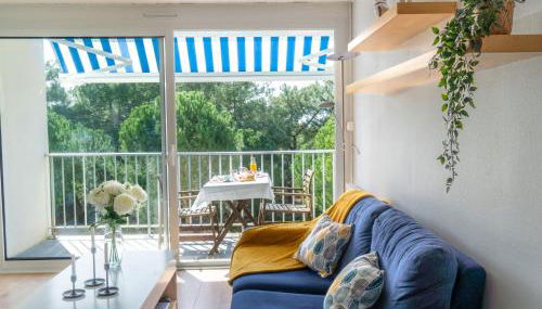 Apartamento de 2 estancias 46 m2 en el 2° piso, orientación oeste. Vivienda adecuada para 2 adultos + 2 niños. Salón-comedor con ventanal con 1 sofá-cama (140 cm, 200 cm de longitud), TV (pantalla plana), persianas eléctricas. Salida al balcón.