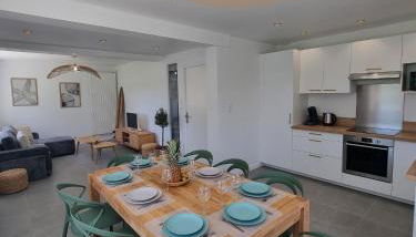 Maison familiale - 10pers - 3 étoiles - lumineuse et cosy - draps et serviettes inclus - parking - La Torche 9 min está en Saint-Jean-Trolimon y dispone de alojamiento con wifi gratis a 25 km de Museo departamental bretón, a 24 km de Cornouaille Theatre y a 25 km de Le Palais des Evêques de Quimper.