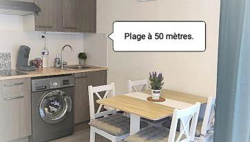 Charmant studio tout équipé à 100m de la plage, clim, terrasse, parking, Wifi, linge de maison inclus
