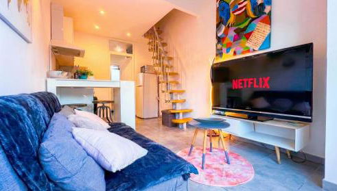 El apartamento cuenta con 1 dormitorio, una cocina con nevera y horno, y 1 baño con ducha, artículos de aseo gratuitos y lavadora. Hay toallas y ropa de cama en el apartamento.