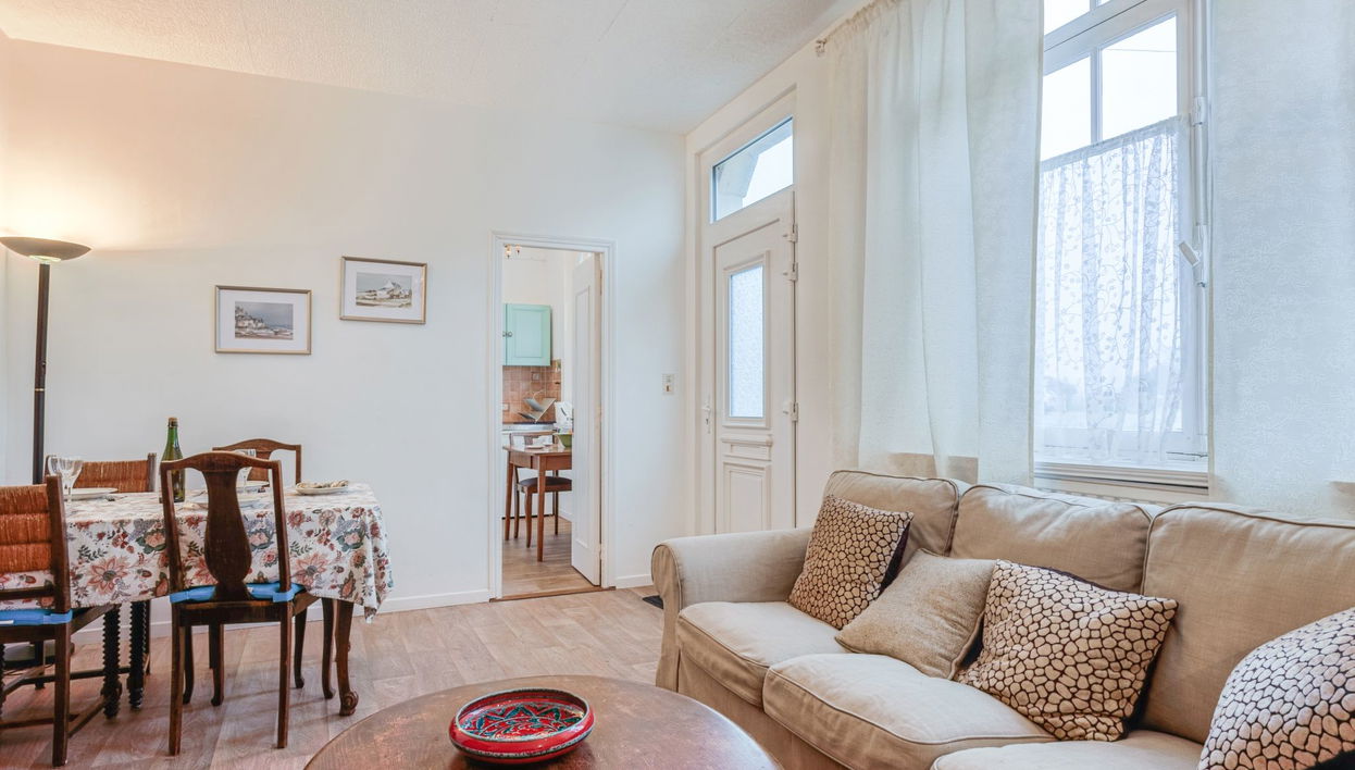"Maison Rose", casa 9 estancias 210 m2 en 3 plantas, en la planta baja. Con mobiliario confortable: 1 dorm. con 2 camas (90 cm, 190 cm de longitud). 1 dorm. con 1 cama de matrimonio (1 x 140 cm, 190 cm de longitud).