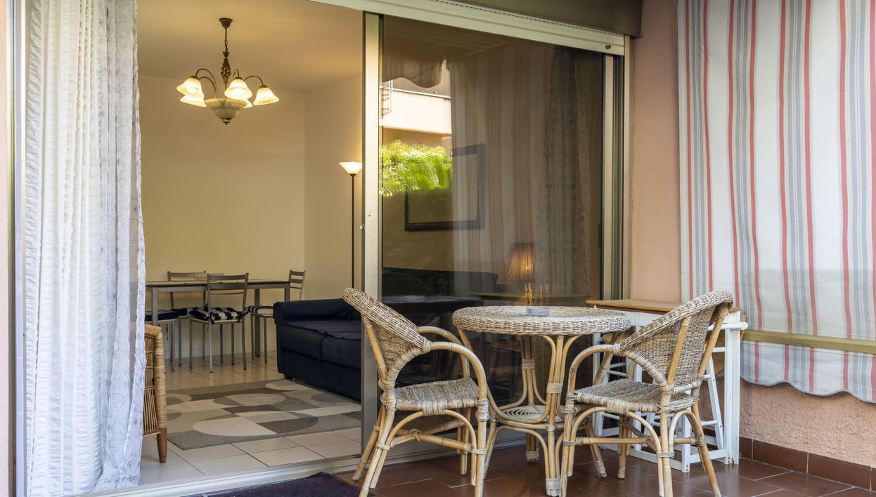 "Baia Sole", apartamento de 2 estancias 60 m2. Luminoso, con mobiliario de buen gusto: salón-comedor con 1 sofá-cama doble (140 cm, 200 cm de longitud). Salida a la terraza-jardín. 1 dorm. doble. Salida a la terraza-jardín.