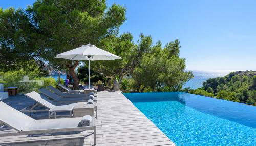 Serene Escape in Ibiza City 1022, que se encuentra en Sant Josep, tiene aire acondicionado y ofrece alojamiento con piscina privada, vistas al mar y balcón. El alojamiento está a 5 min a pie de Cala Jondal y dispone de wifi gratis en todo el alojamiento.