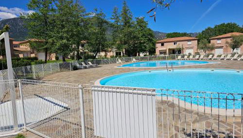 Villa 7 personnes résidence Mélody se encuentra en Santa-Maria-Poggio y ofrece alojamiento con piscina privada, terraza y vistas a la montaña.