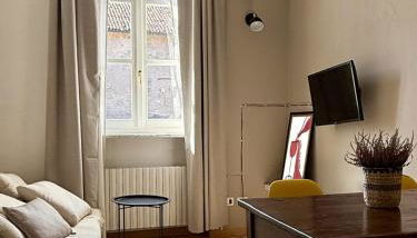El apartamento cuenta con terraza y vistas a la ciudad, y tiene 1 dormitorio, una sala de estar, TV de pantalla plana, una cocina equipada con nevera y horno, y 1 baño con bidet. Hay toallas y ropa de cama en el apartamento.