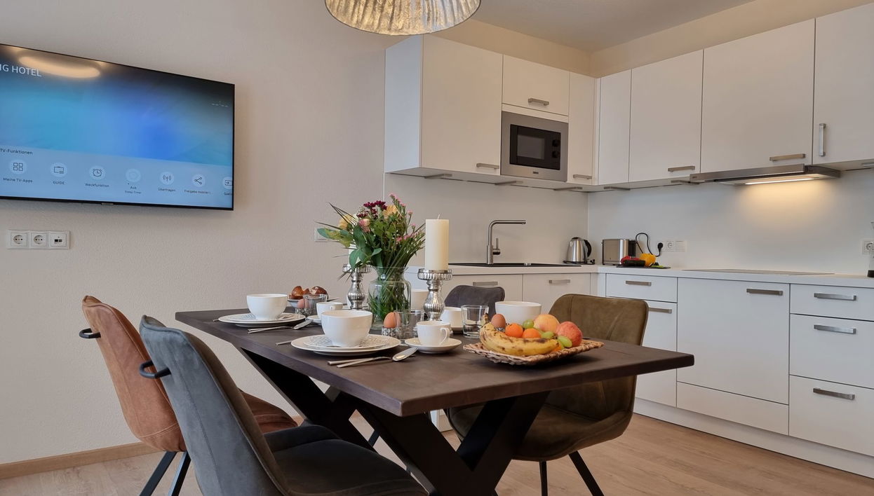 "Brillenschnucke Home", apartamento de 2 estancias 45 m2 en el 1° piso. Espacioso y luminoso, con mobiliario muy moderno y agradable: 1 dorm. doble con TV cable (pantalla plana).
