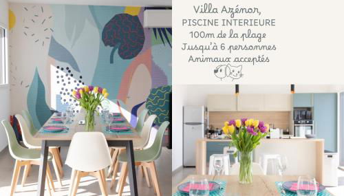 Villa Azénor Bretagne Piscine Intérieure Partagée toute l'année 100m plage, que tiene vistas al mar, dispone de alojamiento con balcón y hervidor, y está a unos 20 km de Golf Baie de Morlaix.