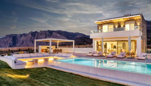 OLIVIA'S Villas está en Mókhlos y ofrece una terraza con vistas al mar y a la montaña, además de piscina al aire libre, sauna y bañera de hidromasaje. Esta villa tiene piscina privada, jardín, zona de barbacoa, wifi gratis y parking privado gratis.