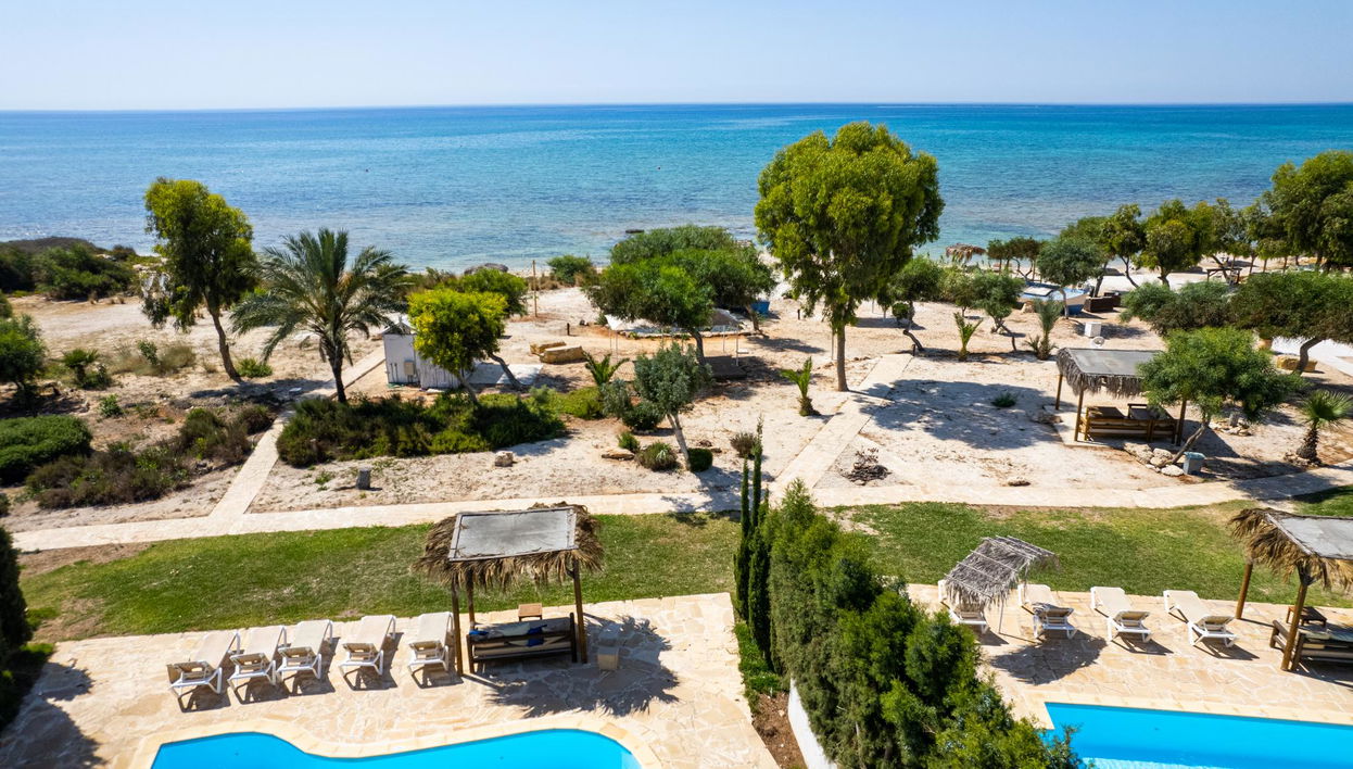 Este hotel de villas goza de una ubicación tranquila frente al mar, cerca de la animada localidad turística de Ayia Napa (a 6 km). Los pueblos cercanos incluyen Liopetri y Sotira (a 3 km y 8 km respectivamente). La estación de autobuses está a solo 2 minutos a pie, mientras que el Aeropuerto Internacional de Larnaca se encuentra a 48 km y el Aeropuerto Internacional de Paphos a 120 km del hotel. Creado por el escultor chipriota Andreas Limbourides, este hotel de villas ofrece alojamiento elegante y confortable de alto nivel. Cada villa, ubicada en una zona privada frente al mar, cuenta con piscina y aparcamiento privados. Renovado en 2008, este hotel ideal para familias ofrece 27 habitaciones en nueve villas. Decoradas en relajantes tonos naturales, cada habitación cuenta con un amplio baño privado con ducha y un dormitorio con cama doble o extragrande. La sala de estar de planta abierta combina una zona de estar, un comedor y una cocina totalmente equipada con TV, radio, nevera, cocina y microondas. El aire acondicionado y la calefacción con control individual garantizan la comodidad durante todo el año. Los huéspedes pueden disfrutar de la piscina exterior de agua salada y relajarse en las tumbonas y sombrillas gratuitas de la playa privada. Para llegar al hotel desde el Aeropuerto de Larnaca, toma la autopista en dirección a Ayia Napa-Paralimni. Después de aproximadamente 40 km, toma la salida Xilofagou hacia Liopetri-Frenaros-Vrisoulles-Potamos. En Liopetriou, gira a la izquierda dos veces en dirección a Ayia Thekla. Las villas se encuentran a 800 metros por esta carretera a la derecha (busca un pequeño supermercado en la carretera principal).