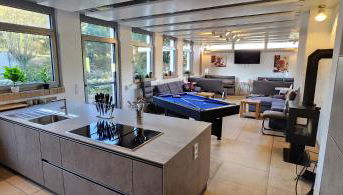 La casa o chalet cuenta con terraza y vistas al jardín, y tiene 6 dormitorios, una sala de estar, TV de pantalla plana, una cocina equipada con nevera y lavavajillas, y 5 baños con ducha. Hay toallas y ropa de cama en la casa o chalet.