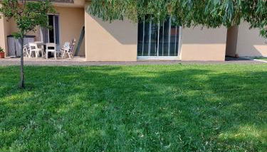 Después de un día de senderismo o ciclismo, la clientela puede relajarse en el jardín o el salón de uso común.