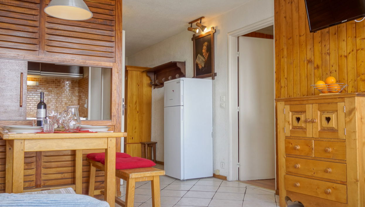 "Platières", apartamento de 2 estancias 37 m2 en el 1° piso. Salón-comedor con 1 cama-nido (2 pers. 2 x 80 cm), TV. Salida al balcón, orientación sur. 1 dorm. con 1 cama (90 cm), 1 x 2 literas (90 cm). Salida al balcón, orientación sur. Rincón-cocina (4 fogones, horno pequeño, lavavajillas, microondas). Baño/WC. A tener en cuenta: apartamento para no fumadores. Detector de humo.