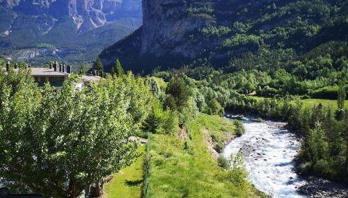 Suite Vistas Únicas a Ordesa y MontePerdido - Piscinas - Barbacoa, que está en Torla-Ordesa, ofrece alojamiento con piscina privada, vistas al jardín y balcón. Dispone de piscina de temporada al aire libre, jardín, vistas al río y wifi gratis en todo el alojamiento.