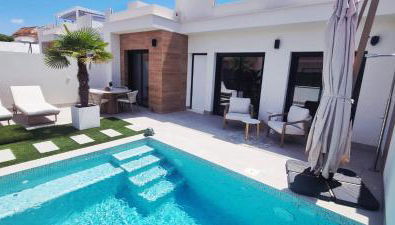 Gelijkvloerse villa met privézwembad en dakterras se encuentra en Dolores, a 29 km de Campo de golf Las Colinas y a 44 km de Puerto deportivo Tomás Maestre, y ofrece alojamiento con aire acondicionado, patio y wifi gratis.
