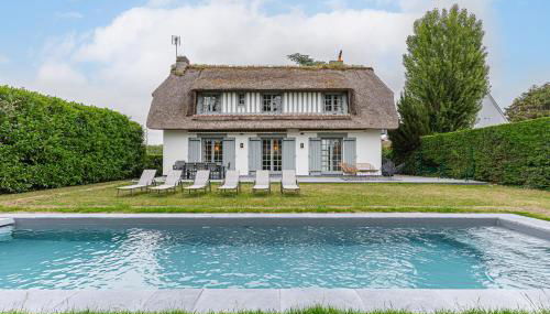 Luxueuse Chaumière 4 Chambres avec Piscine, que tiene terraza, dispone de alojamiento en Deauville con wifi gratis y vistas al jardín. Esta villa también tiene piscina privada.