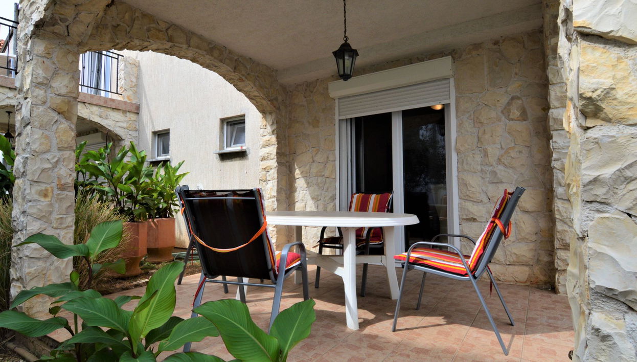 "Josip", apartamento de 2 estancias 50 m2, en la planta baja. Salón-comedor con 1 sofá-cama doble, TV satélite y aire acondicionado. Salida a la terraza. 1 dorm. con 1 cama y 1 cama doble.