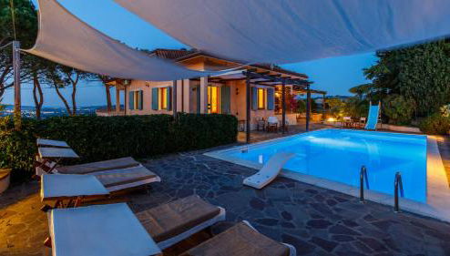 Esta villa de 4 dormitorios tiene aire acondicionado y ofrece 3 baños con bidet, ducha y secador de pelo. La cocina está equipada con nevera, lavavajillas y horno, además de cafetera y hervidor.