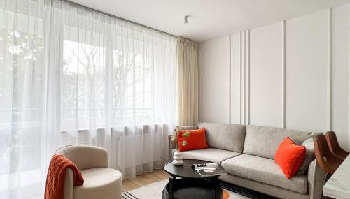 Gustowny apartament przy metrze, que cuenta con vistas al jardín, ofrece alojamiento con terraza y balcón a unos 4,6 km de Palacio de Wilanów. Monumento a Frédérick Chopin y Parque Real Łazienki están a 8,9 km y a 9,3 km del apartamento, y hay wifi gratis.