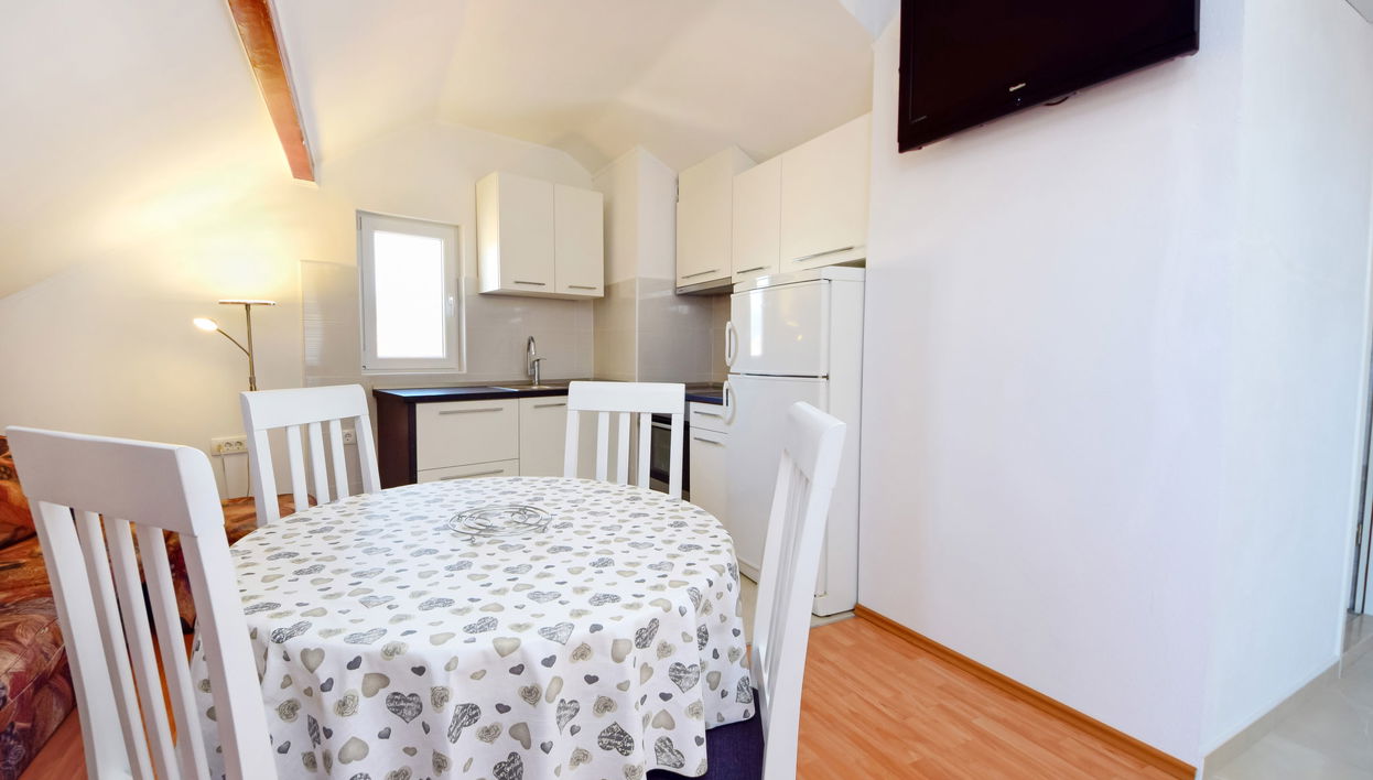 Apartamento de 3 estancias 55 m2, en el ático, orientación oeste. Salón-comedor con TV satélite (pantalla plana), aire acondicionado. Salida al balcón. 1 dorm., abuhardillado altura de techo 170 - 240 cm con 1 cama doble (2 x 90 cm, 190 cm de longitud). 1 dorm., abuhardillado altura de techo 130 - 240 cm con 2 camas (90 cm, 190 cm de longitud). Cocina abierta (horno, 4 placas de vitrocerámica, congelador). Ducha/WC. Balcón 3 m2. Muebles de balcón. El alojamiento dispone de: Internet (Wifi, gratis).