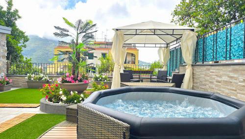 Grazy Home - Bright new Apt with Terrace and Jacuzzi, que cuenta con piscina de temporada al aire libre, jardín y terraza, ofrece alojamiento en Vico Equense con wifi gratis y vistas a la montaña. Se ofrece parking privado por un suplemento.
