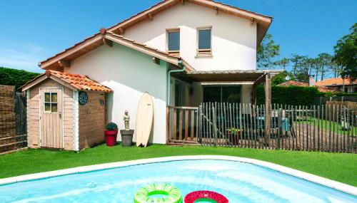 VILLA CASA KOKO 10 PERS piscine chauffée, pétanque, ping pong VIEUX-BOUCAU, que tiene bicicletas gratis, piscina de temporada al aire libre y jardín, dispone de alojamiento en Vieux-Boucau-les-Bains con wifi gratis y vistas al jardín.