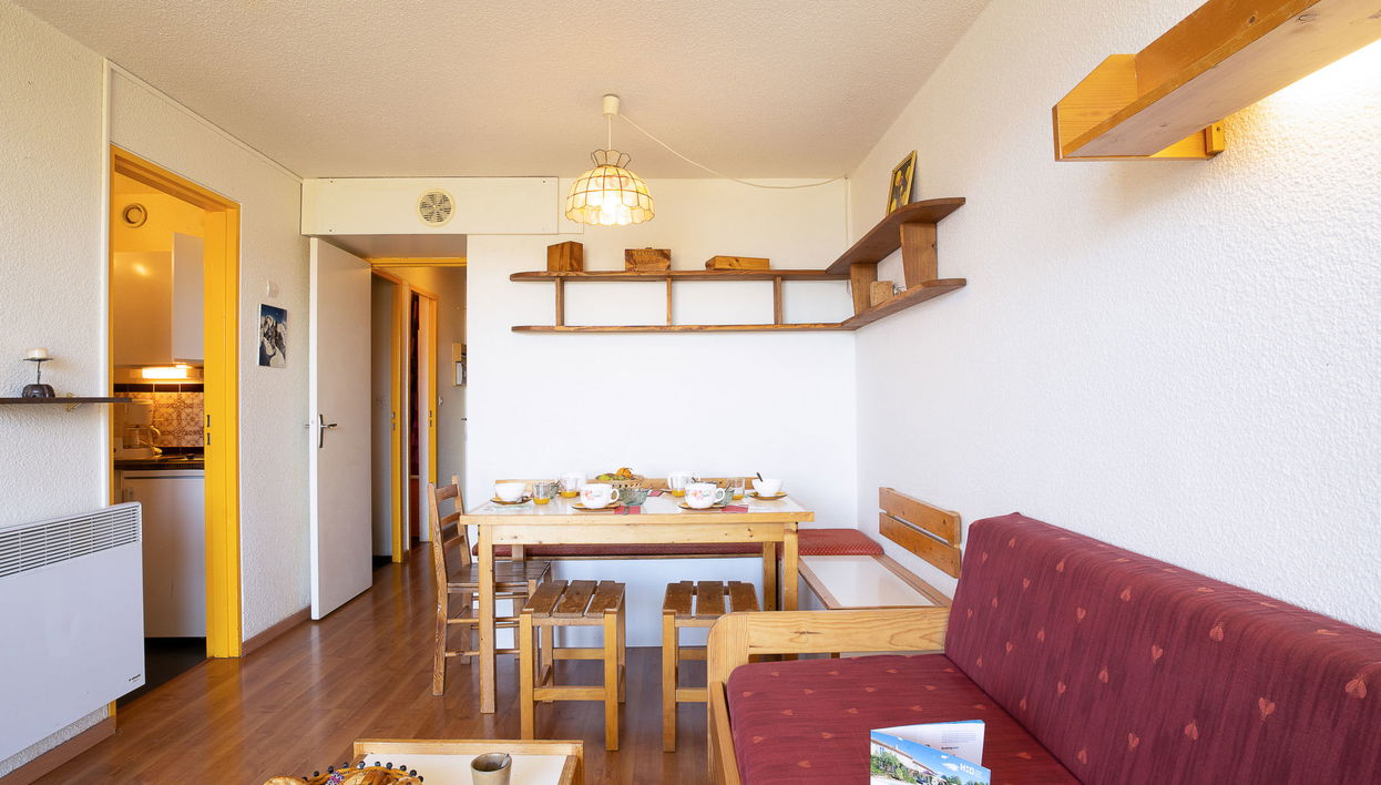 Apartamento de 2 estancias 36 m2 en el 5° piso, orientación norte. Con mobiliario sencillo: salón-comedor con 1 cama-nido (2 pers. 2 x 80 cm, 190 cm de longitud), TV (pantalla plana). Salida al balcón, orientación norte. 1 dorm. con 1 cama de matrimonio (140 cm, 190 cm de longitud). Salida al balcón, orientación norte. Rincón-dormitorio con 1 x 2 literas (80 cm, 190 cm de longitud). Rincón-cocina (2 fogones, horno pequeño, microondas, cafetera eléctrica, horno Raclette). Baño, WC separado. Calefacción eléctrica. Suelo de parquet. Balcón 9 m2, orientación norte. Vista a las montañas y al valle. El alojamiento dispone de: plancha, secador de pelo. Internet (Wifi, extra). A tener en cuenta: permitido máximo 1 mascota / perro. Detector de humo. En lugar de un dormitorio cerrado, algunos espacios para dormir están situados en una zona diáfana (galería, alcoba, etc.). Oferta de un particular según el art. 155, IV del CGI.