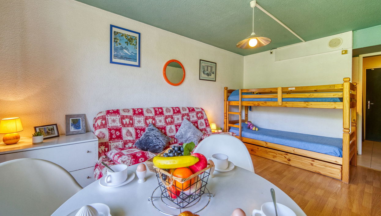 Estudio 22 m2 en el 9° piso, orientación sur. Con mobiliario sencillo: salón-comedor con 1 sofá-cama doble (130 cm, 190 cm de longitud), 1 x 2 literas (90 cm, 190 cm de longitud), TV (pantalla plana). Salida al balcón, orientación sur. Rincón-cocina en la entrada (2 fogones, horno, microondas, cafetera eléctrica). Baño/WC. Calefacción eléctrica. Suelo de parquet. Balcón 4 m2, orientación sur. Tumbonas (1). Vista a la pista de esquí. El alojamiento dispone de: Internet (Wifi, extra). A tener en cuenta: permitido máximo 1 mascota / perro. Detector de humo. Oferta de un particular según el art. 155, IV del CGI.