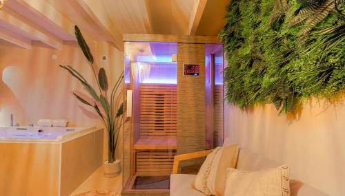 El apartamento dispone de un centro de spa y bienestar con sauna y bañera de hidromasaje.